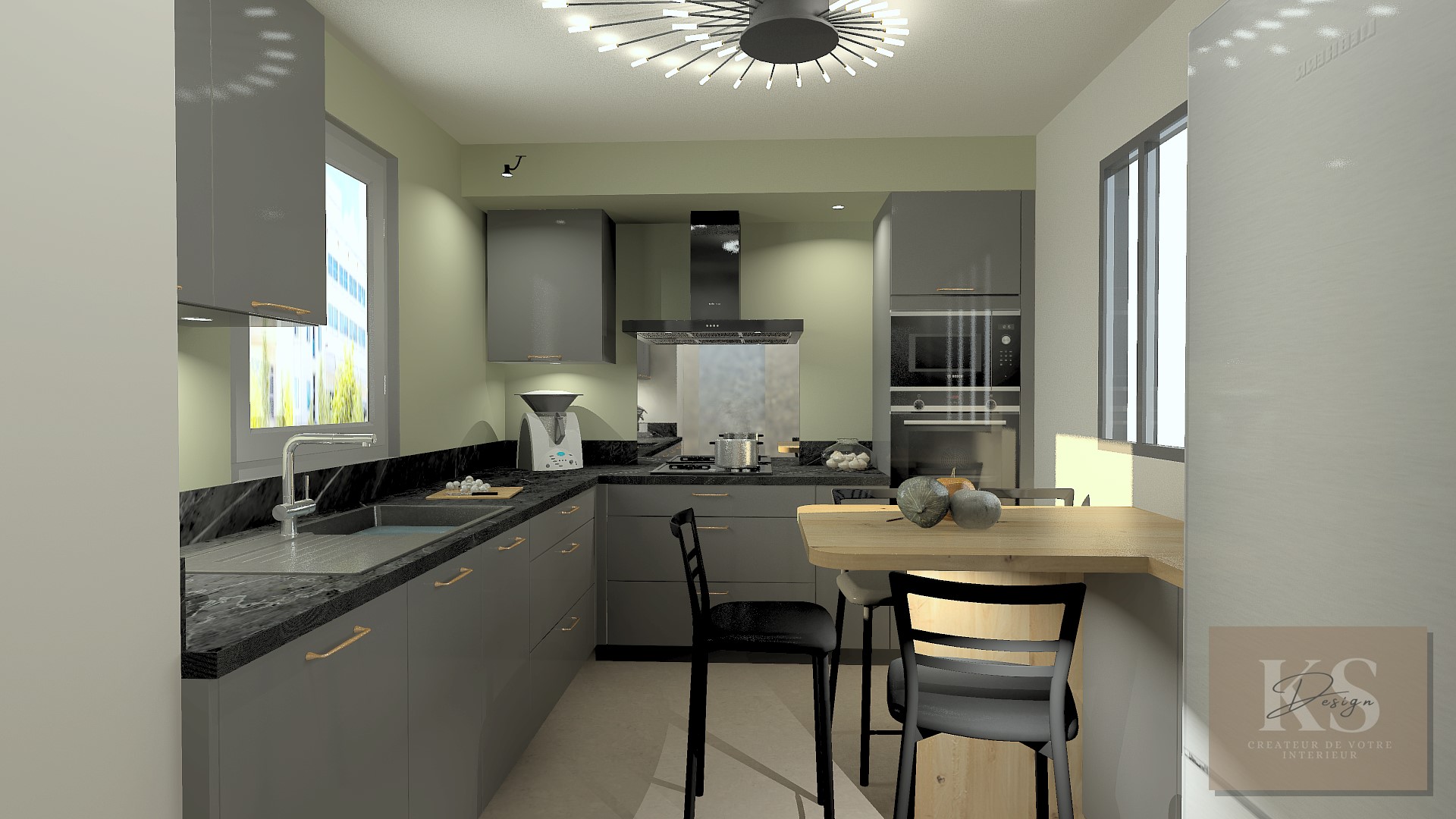 Grâce à des visuels 3D photoréalistes, nous avons pu projeter notre client dans sa future cuisine. Chaque détail a été pensé : choix des matériaux, implantation des meubles, harmonisation des couleurs et optimisation des rangements. Ces rendus ont permis d’affiner le projet jusqu’à obtenir un résultat correspondant parfaitement à ses attentes.