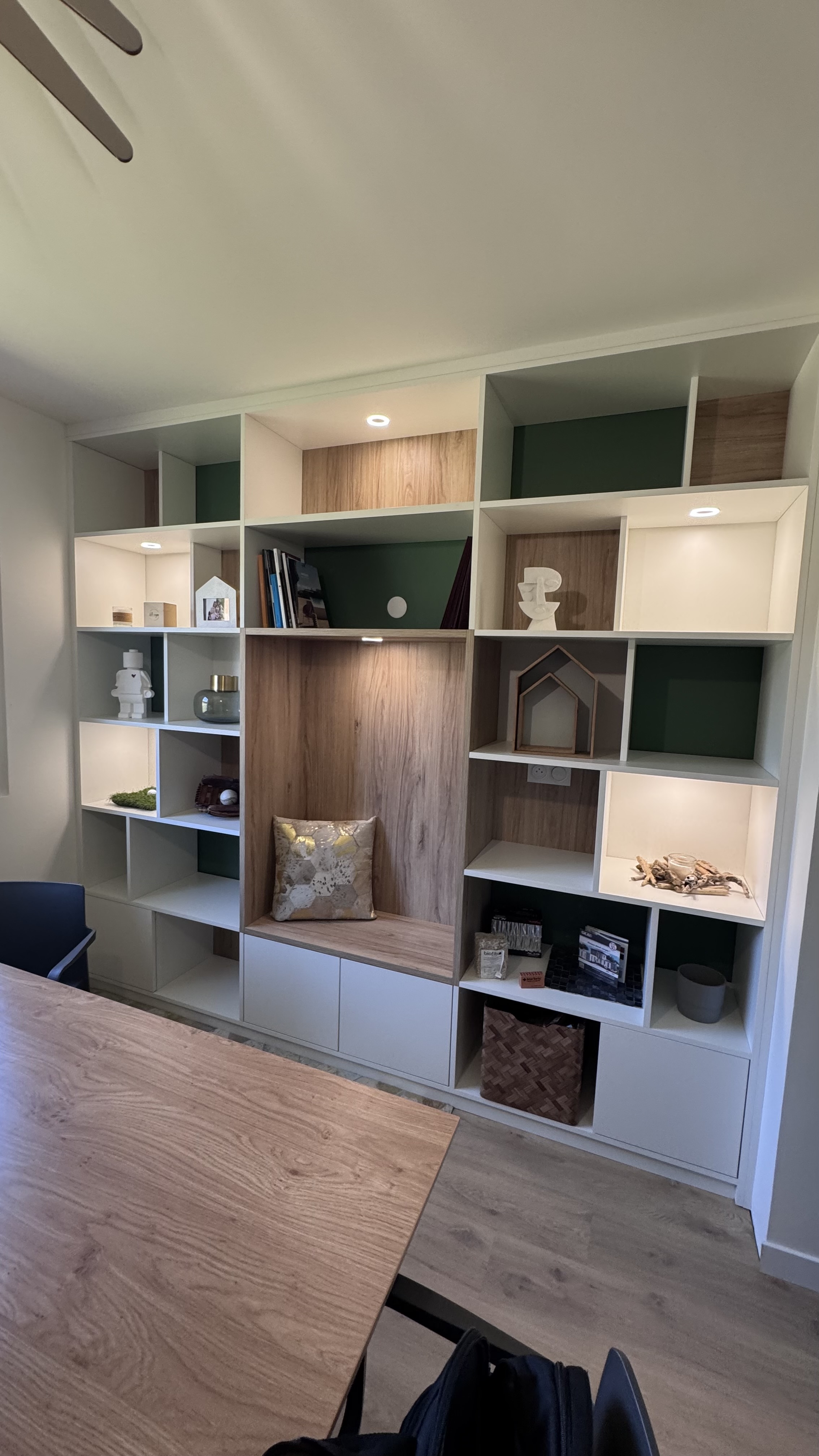 Grâce à des visuels 3D photoréalistes, nous avons pu aider notre client à se projeter dans sa future bibliothèque. L’agencement, le choix des matériaux, l’équilibre des volumes, l’éclairage et l’optimisation des rangements ont été minutieusement pensés. Ces rendus ont permis de valider chaque détail avant réalisation, afin d’aboutir à un espace parfaitement en phase avec les attentes et les usages définis.