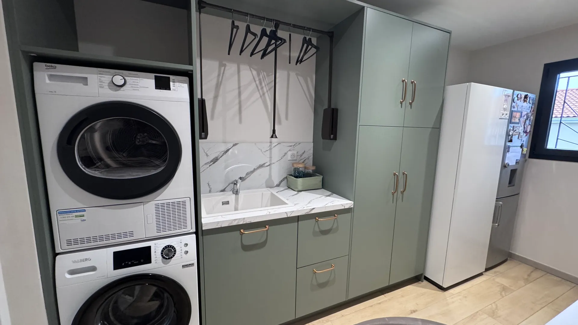 La buanderie est aujourd’hui un espace parfaitement optimisé, où chaque élément trouve sa place.